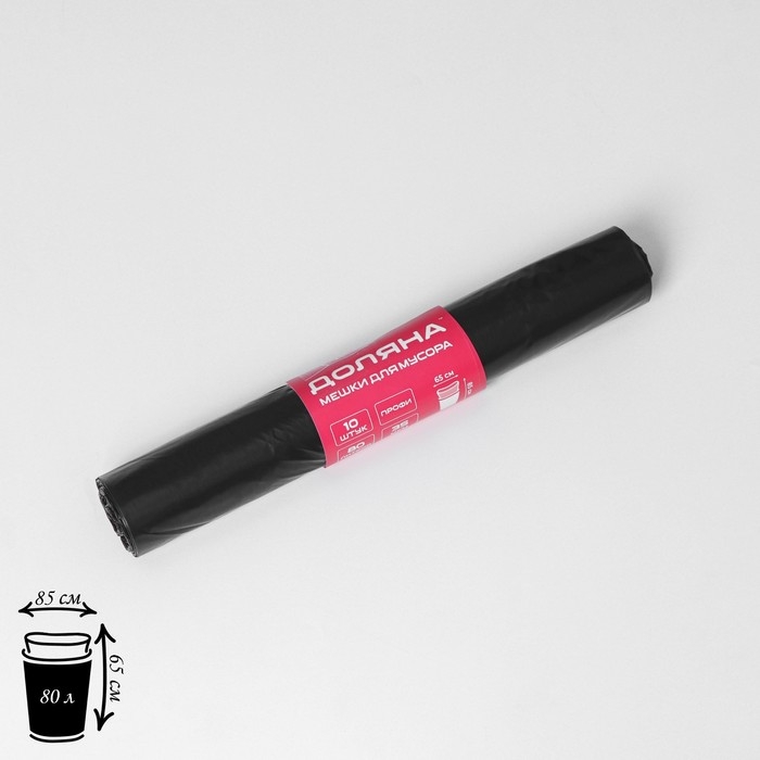 Мешки для мусора Доляна «Экстра», 80 л, 65×85 см, 35 мкм, ПВД, 10 шт, цвет чёрный, МИКС