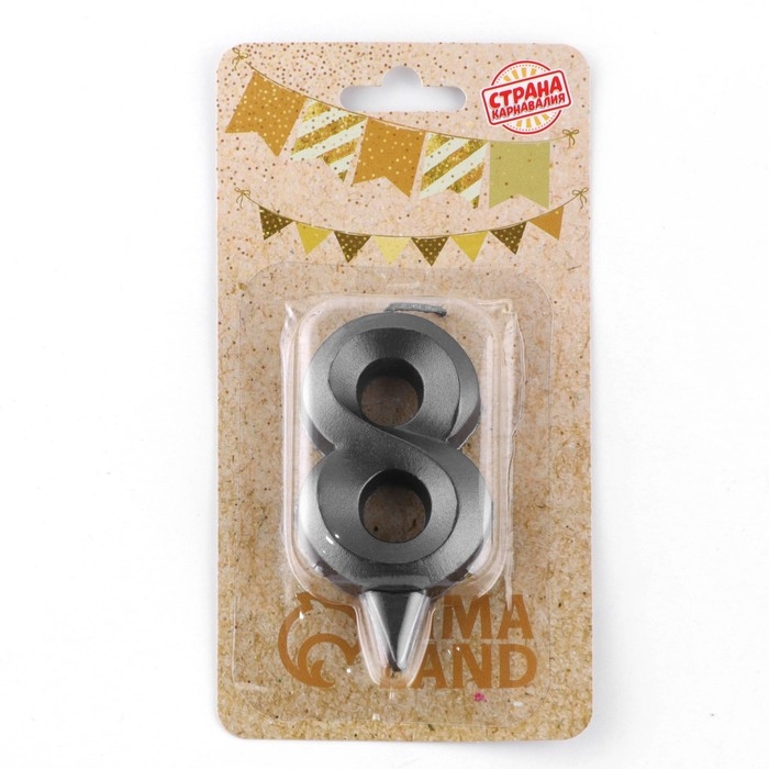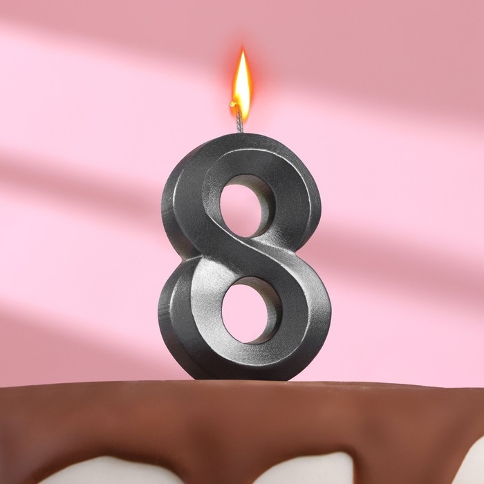 Свеча в торт "Грань" ,цифра 8 , графит, 6,5 см