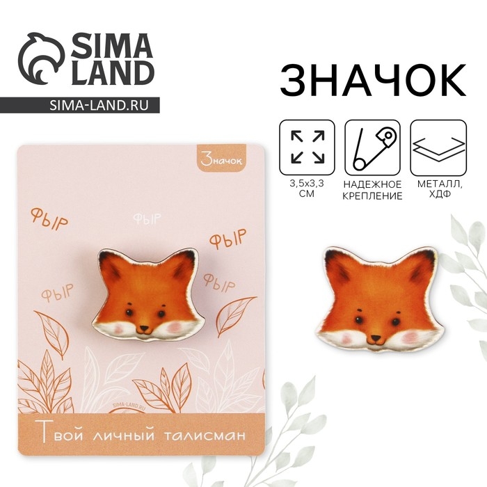 Значок талисман «Лиса», 3,5 х 3,3 см. - яркий элемент, который порадует любого.