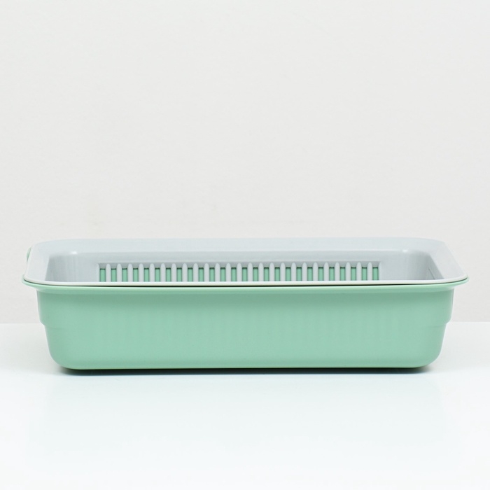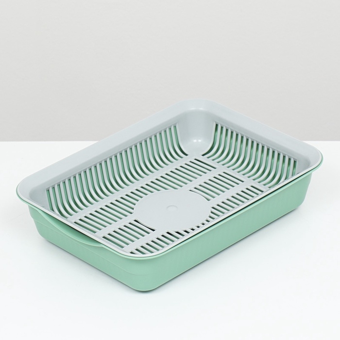 Лоток с сеткой №3, 34 х 25,5 х 7 см, серый/оливковый