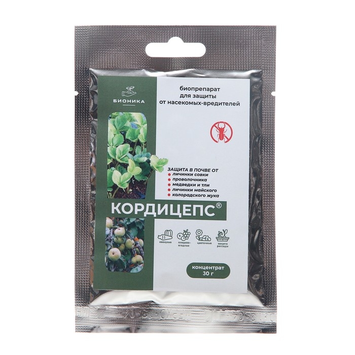 Кордицепс биоинсектицид почвенный против проволочника, личинок майского, колорадского жука, медведки, мухи, (белой, луковой, морковной, свекловичной минирующей), тепличной белокрылки, точило лукового, филлоксеры, малиновой моли.