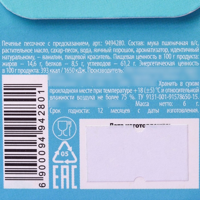 Печенье с предсказанием «Узнай что тебя ждёт», 1 шт.