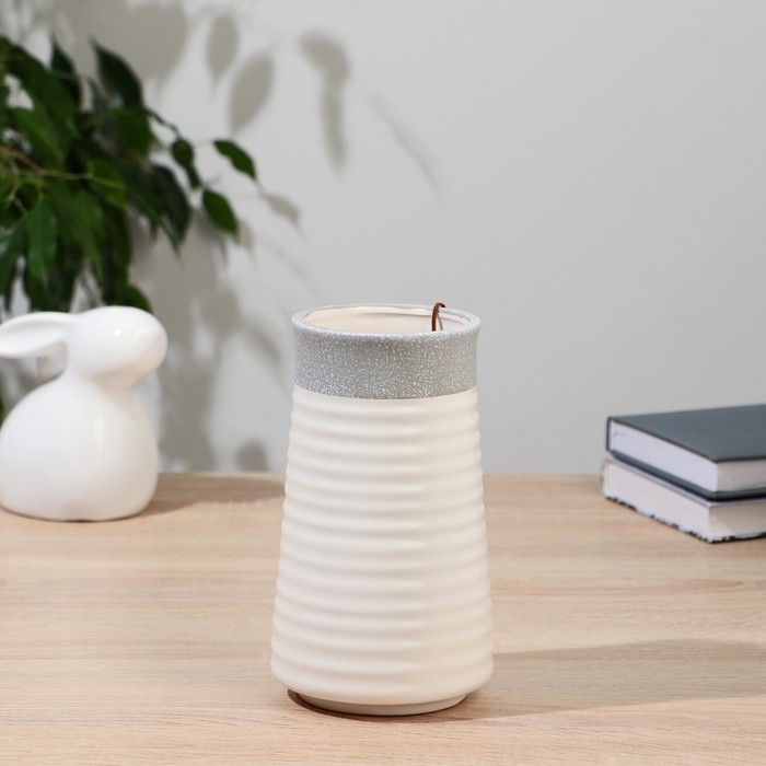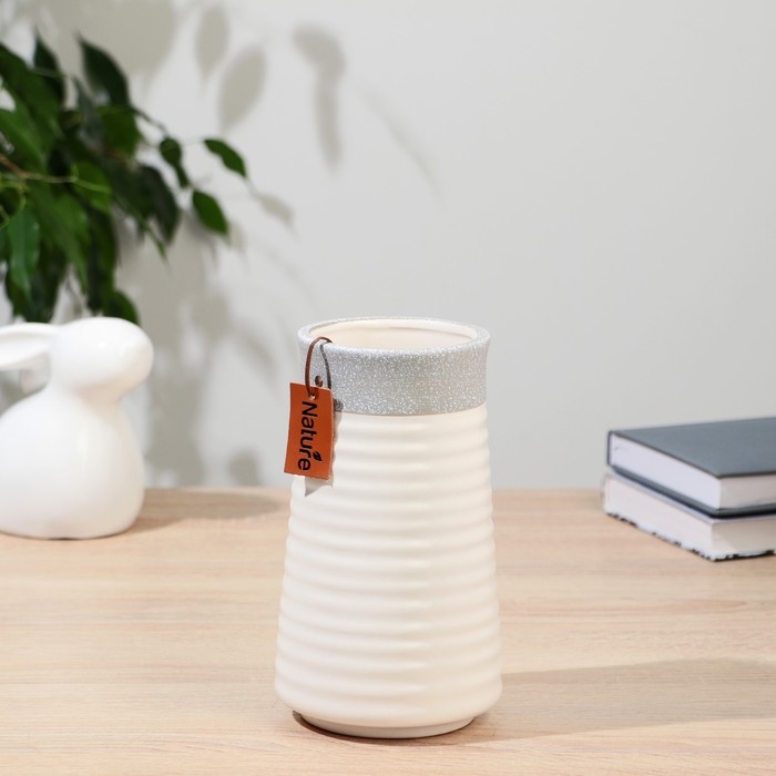 Керамическая ваза для цветов, сухоцветов «Лиам» натура, настольная, d-8.5×10 см, h-18 см, бело-серый