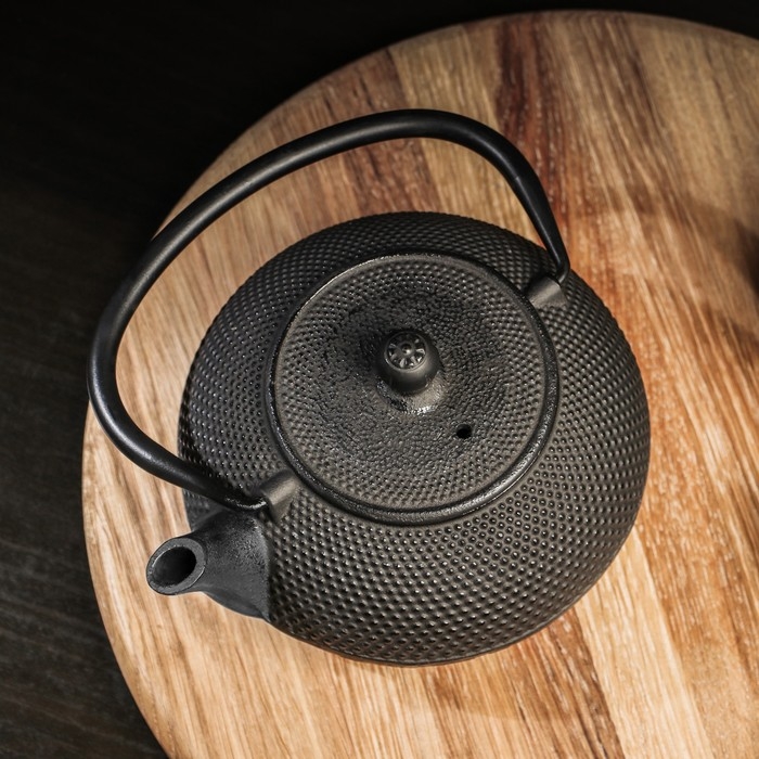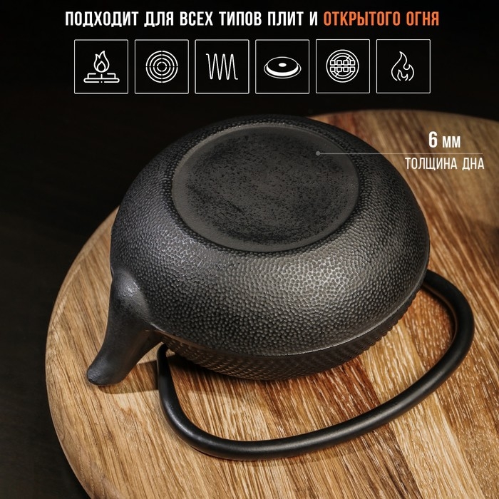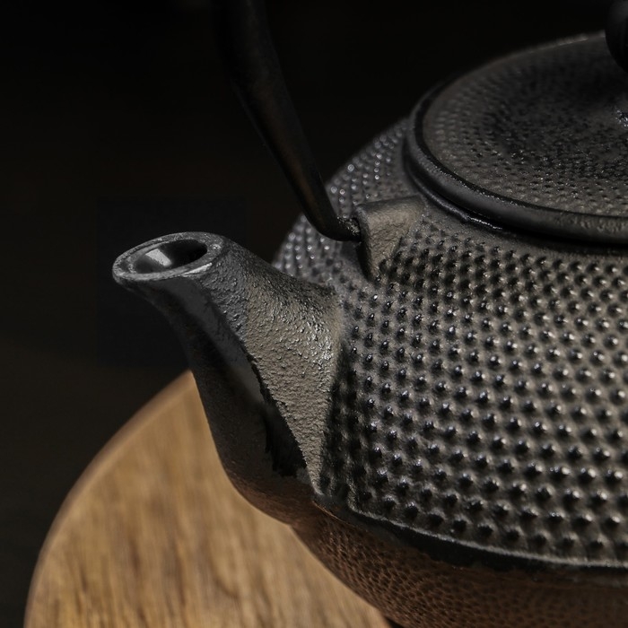 Чайник для плиты Доляна «Чёрный тигр», 700 мл, с ситом, чугун, эмалированное покрытие внутри, индукция, цвет чёрный