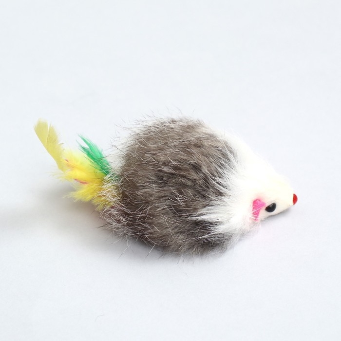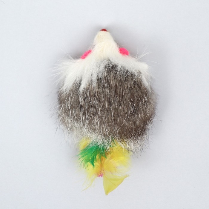 Мышь из натурального меха с хвостом из перьев, 5 см