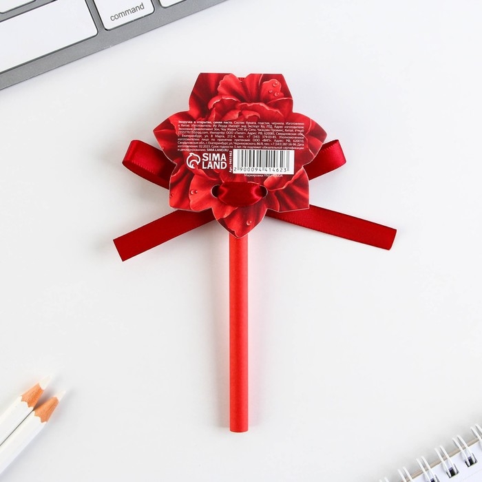 Ручка шариковая синяя паста «Цветок»,пластик, на подложке 8 марта