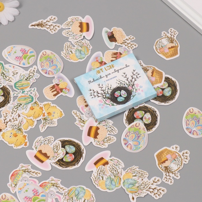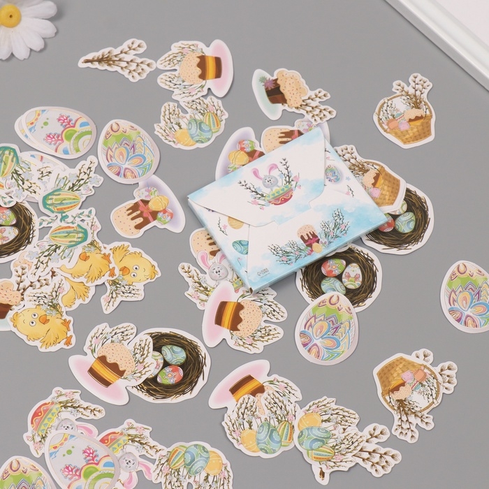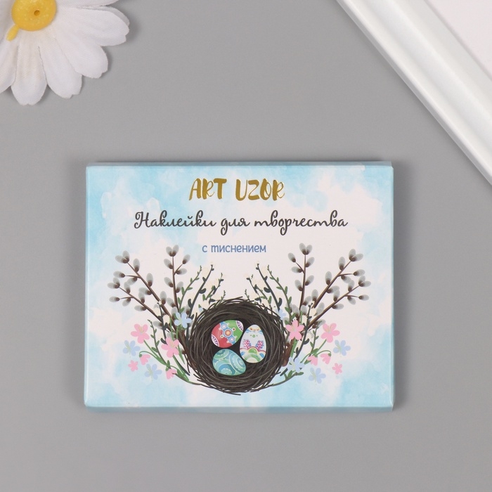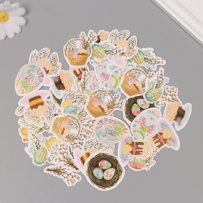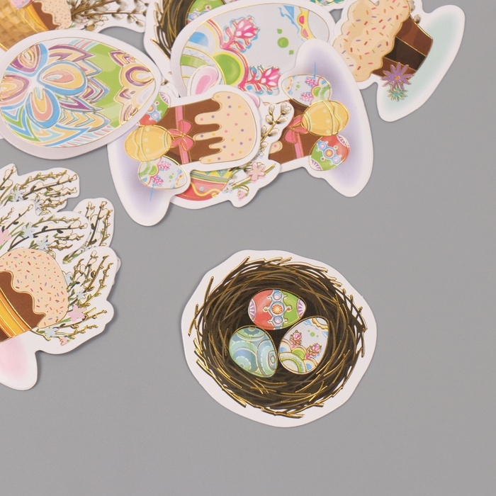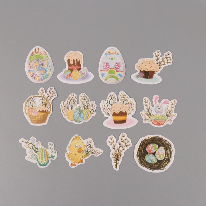 Наклейки для творчества "Праздник Светлой Пасхи" тиснение золото набор 48 шт 9х7х0,8 см