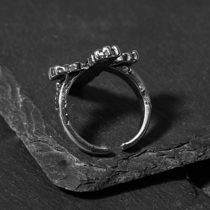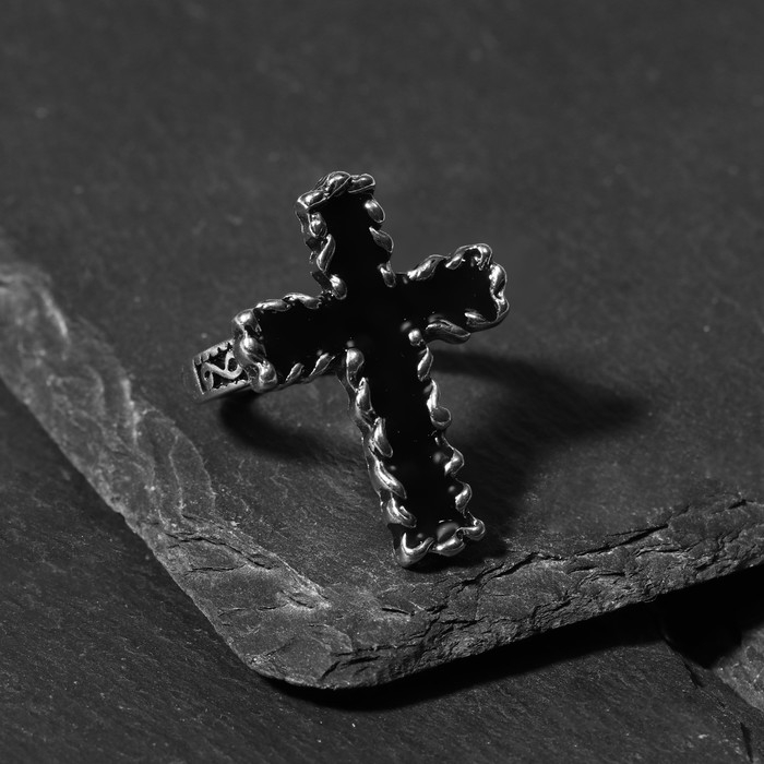 Кольцо «Перстень» крест, цвет чернёное серебро, безразмерное