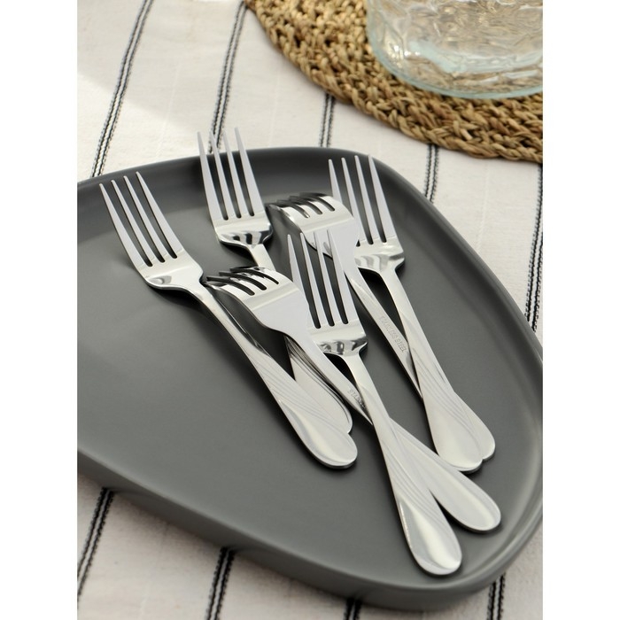 Набор вилок столовых из нержавеющей стали Доляна «Капля», длина 21 см, 6 шт, цвет серебряный