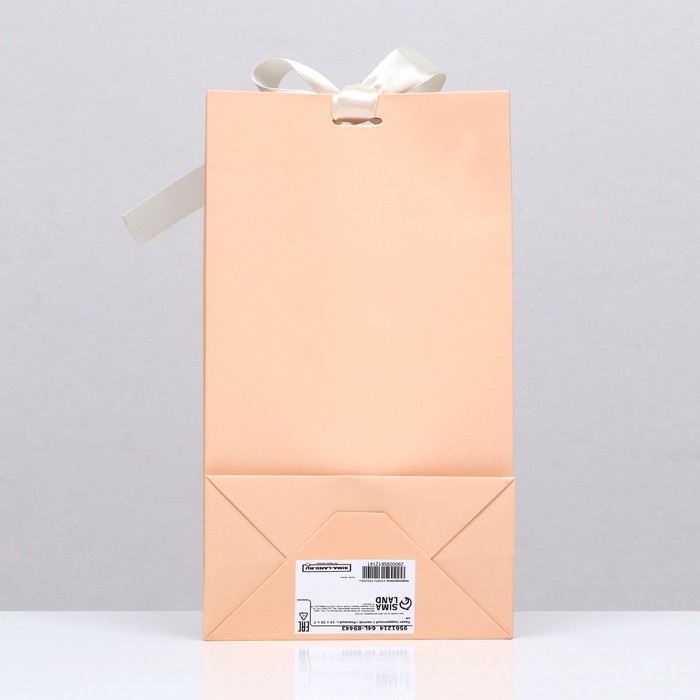 Пакет подарочный с лентой «Бежевый», 13 х 23 х 7 см