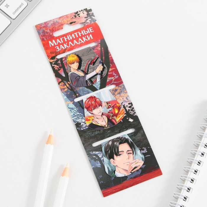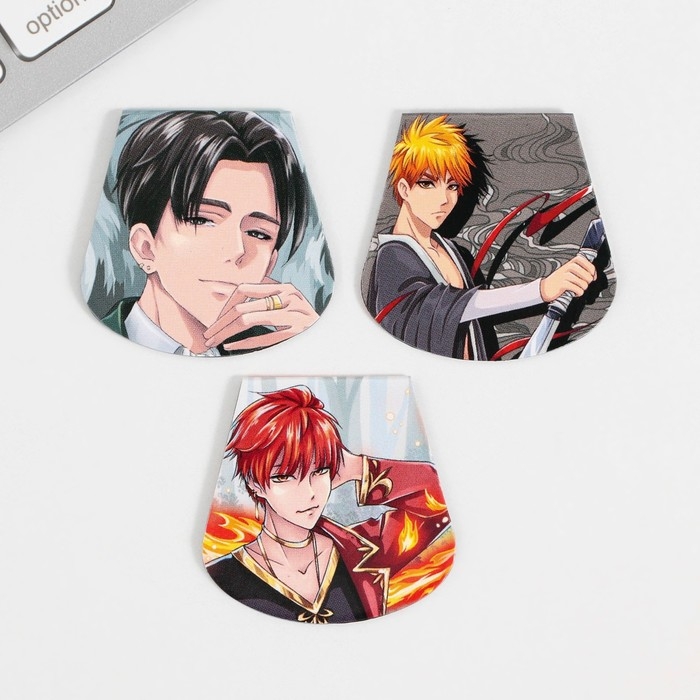 Закладки магнитные для книг, 3 шт «Аниме. Парни»