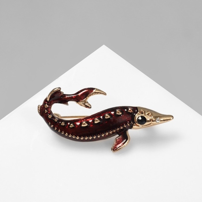 Брошь «Рыба» осётр, цвет чёрно-коричневый в золоте