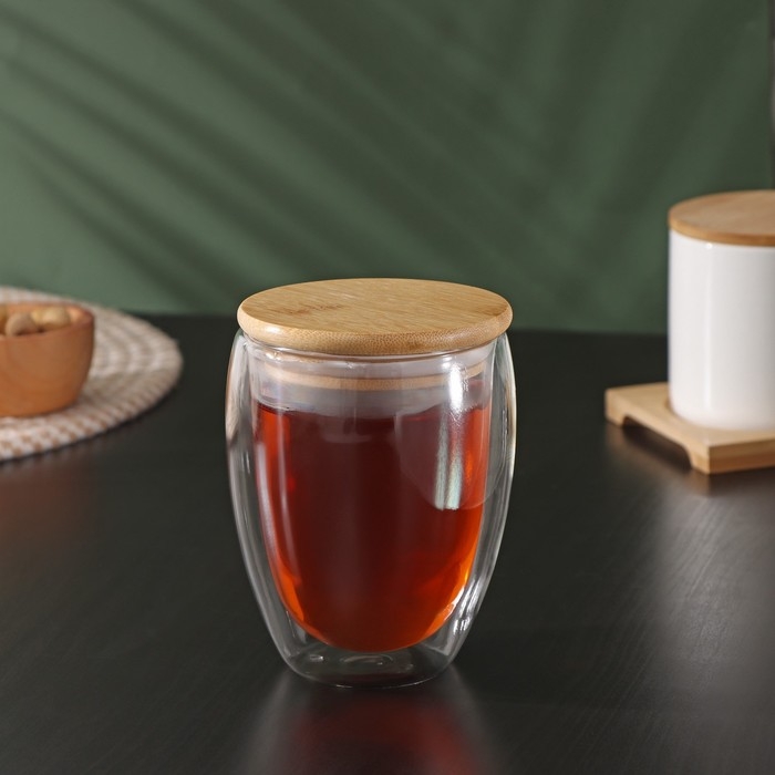 Стеклянный стакан с двойными стенками BellaTenero – это отличный пример функциональной посуды. Изделие подходит для подачи любых охлаждённых и горячих напитков. Содержимое всегда будет оставаться внутри, благодаря бамбуковой крышке с силиконовым уплотнителем