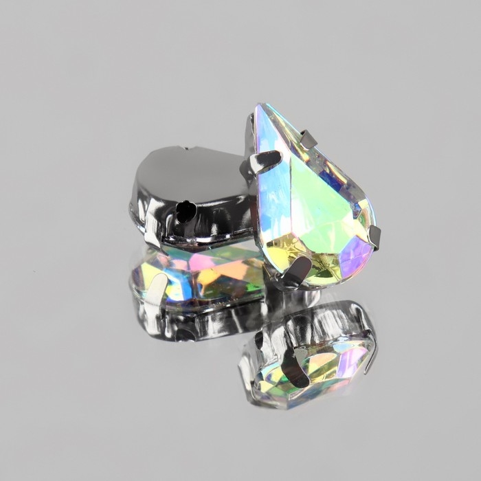 Стразы пришивные «Капля», в оправе, с голографией, 8 × 13 мм, 20 шт