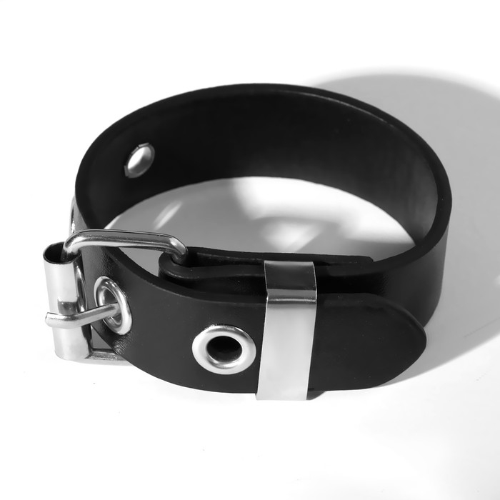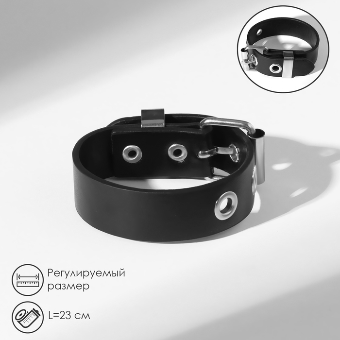 Браслет кожа «Хардкор» ремешок, цвет чёрный в серебре