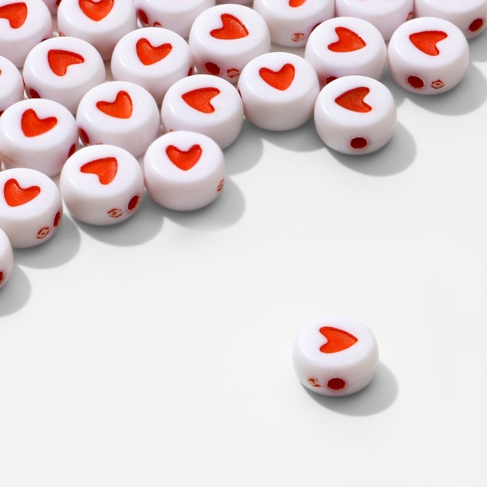 Бусина из акрила «Сердце» в круге, 7×4 мм, (набор 10 г), цвет красно-белый