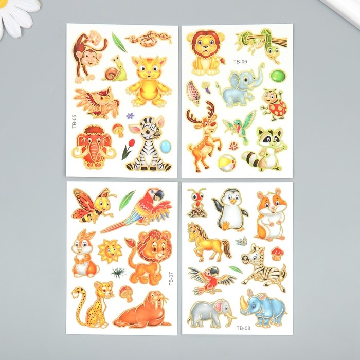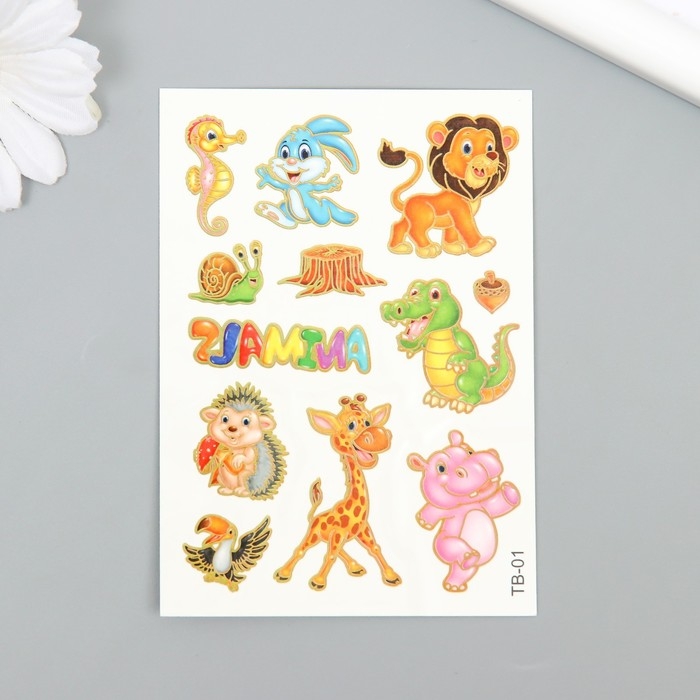 Татуировка на тело цветная "Зоопарк" с золотом МИКС 7,5х10 см