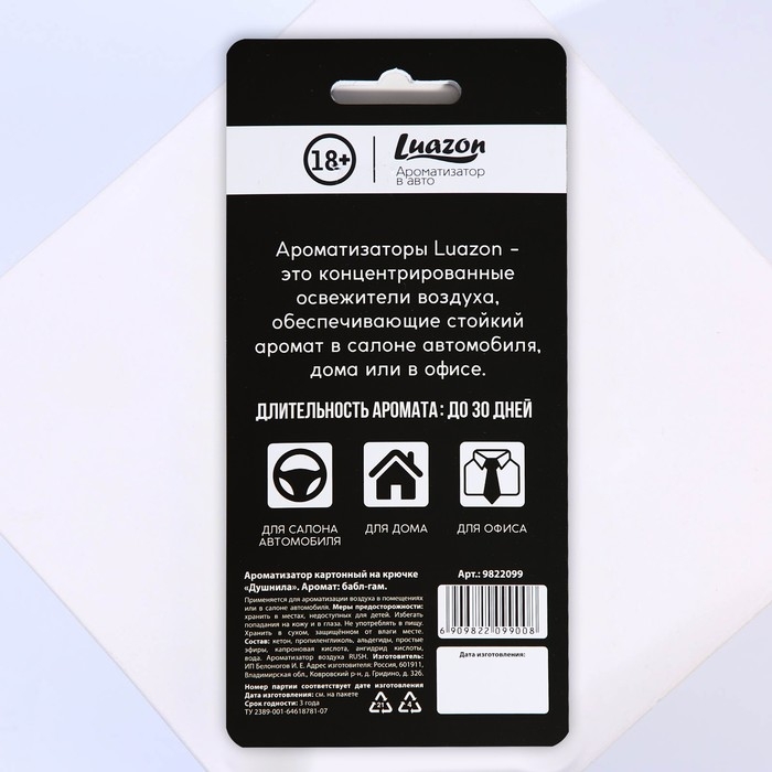 Ароматизатор в машину Luazon «Душнила», аромат ваниль