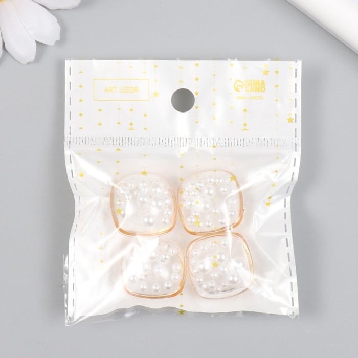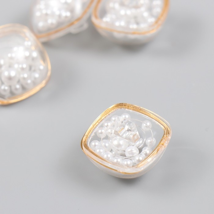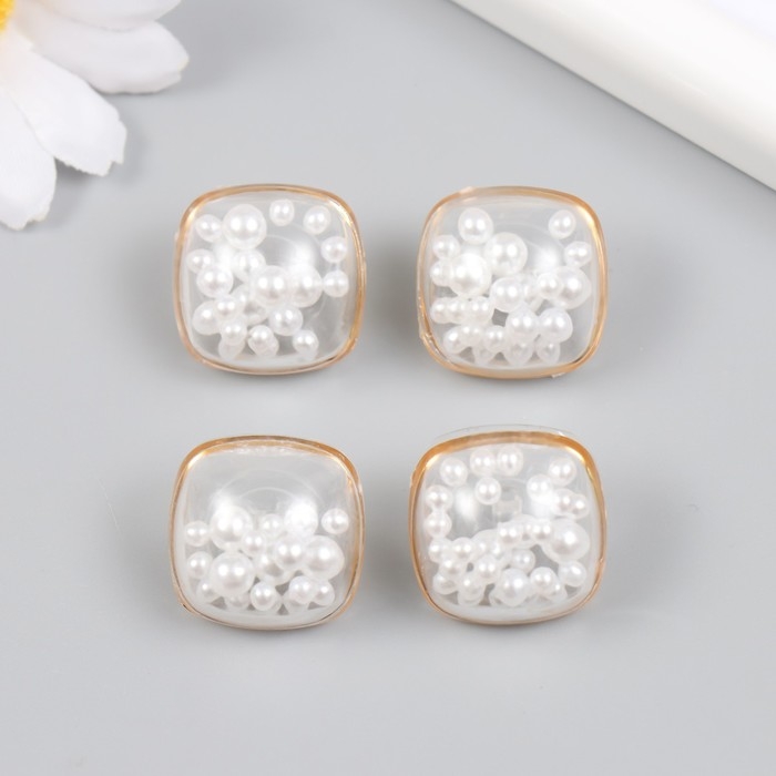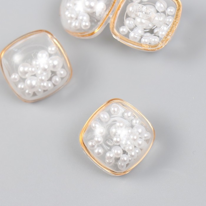 Пуговица пластик для творчества "Жемчужинки в квадрате" 2,2х2,2х1,8 см