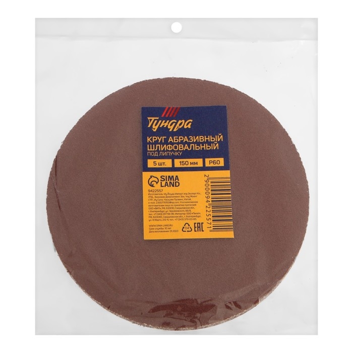 Круг абразивный шлифовальный под "липучку" ТУНДРА, 150 мм, Р60, 5 шт.