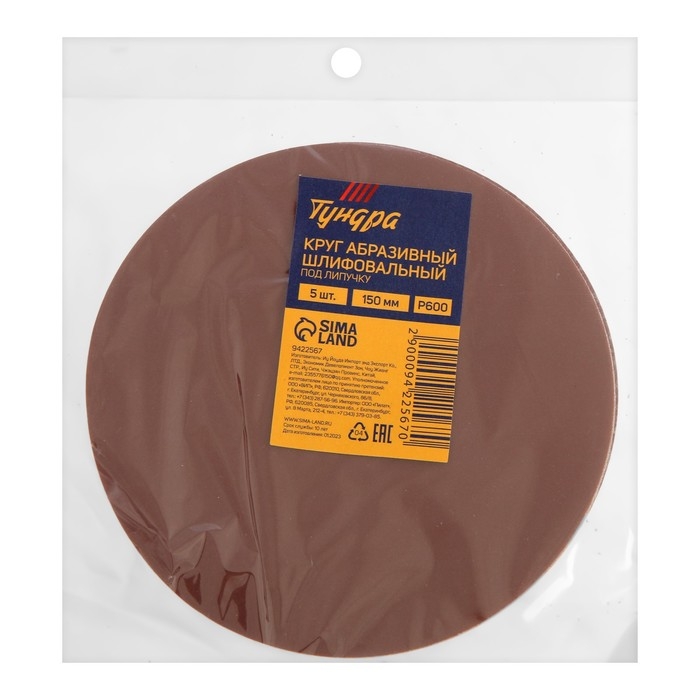 Круг абразивный шлифовальный под "липучку" ТУНДРА, 150 мм, Р600, 5 шт.