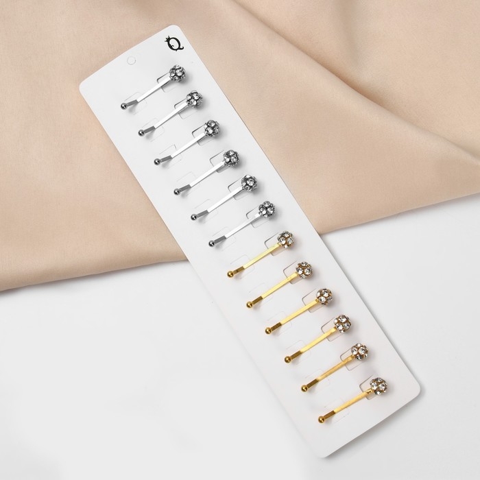 Зажим для платка «Хрусталь» шарик, цвет белый в серебре (неделимая фасовка 12 шт., цена за шт.)