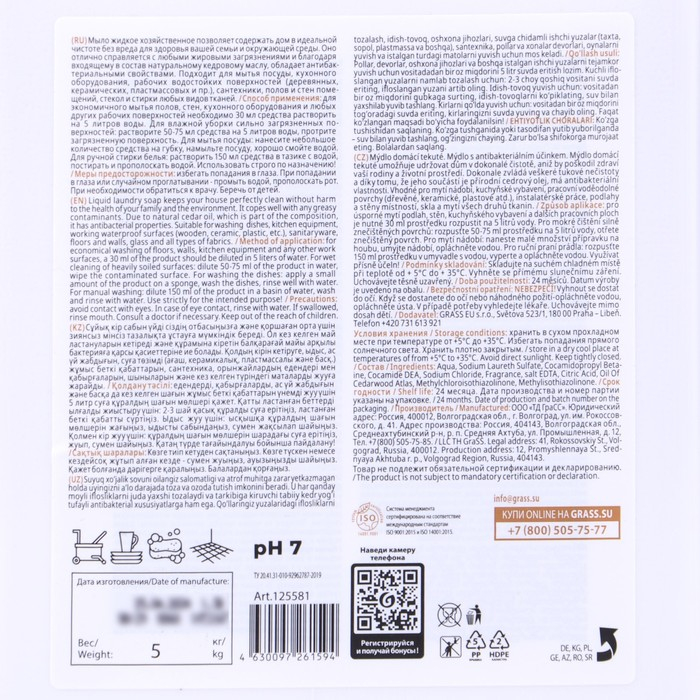 Жидкое мыло Grass "Масло кедра", хозяйственное, 5 л