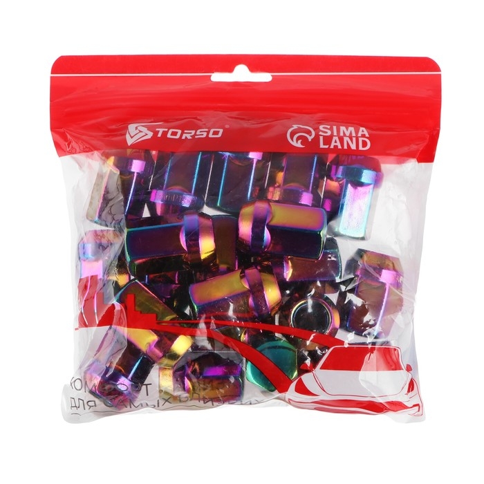 Гайка колесная M12X1.5, высота 35 мм, ключ 19 мм, радужный титан, фасовка 20 шт