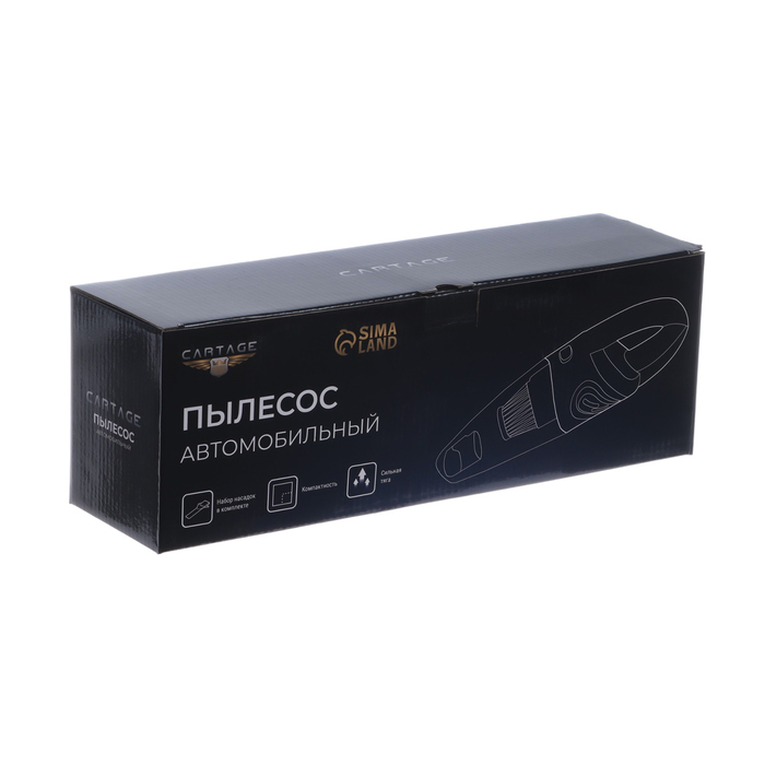 Пылесос автомобильный CARTAGE, беспроводной, 3 насадки, 120 Вт, 12 В, черный