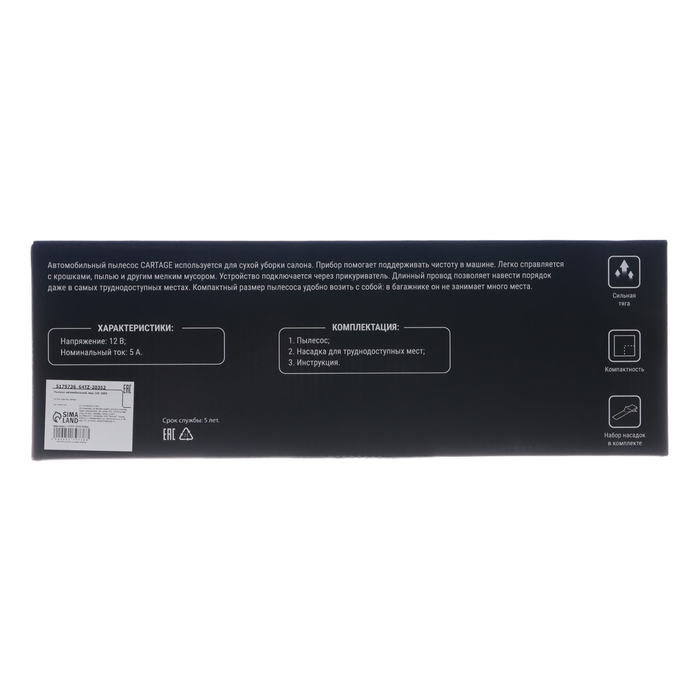 Пылесос автомобильный CARTAGE, 5 насадок, 120 Вт, 12 В, черный