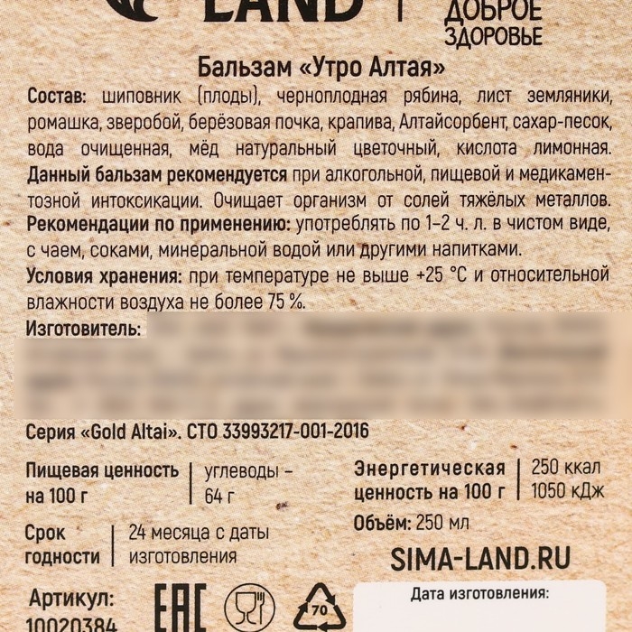 Состав: шиповник (плоды), черноплодная рябина, лист земляники, ромашка, зверобой, берёзовая почка, крапива, Алтайсорбент, сахар-песок, вода очищенная, мёд натуральный цветочный, кислота лимонная.