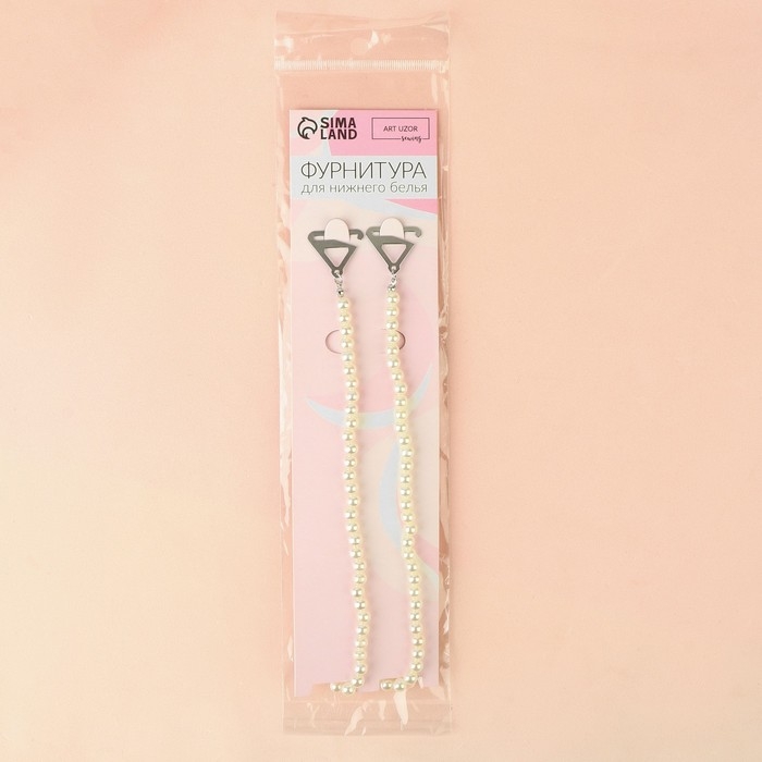 Бретели декоративные с жемчугом, фурнитура металл, 5 мм, 45 см, пара, цвет белый