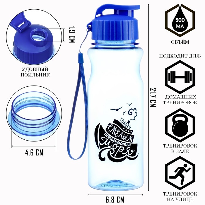 Бутылка для воды, 500 мл, "Только смелым покоряются моря"