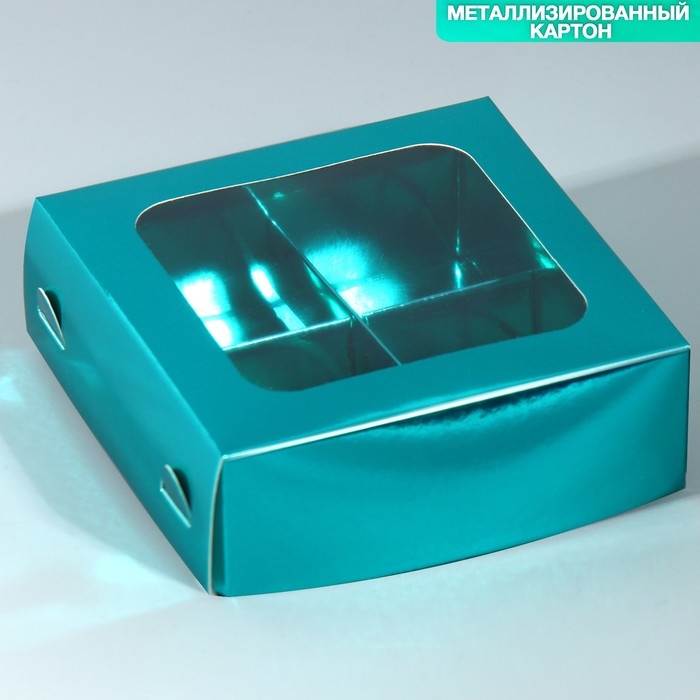 Коробка для конфет, кондитерская упаковка, 4 ячейки, «Голубая», 10.5 х 10.5 х 3.5 см