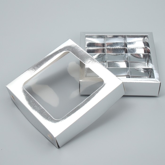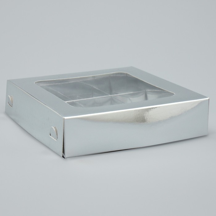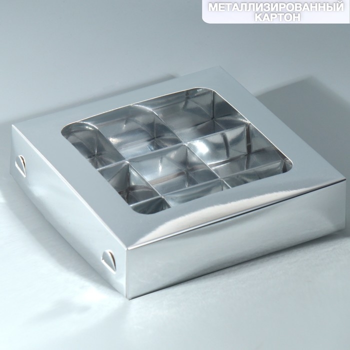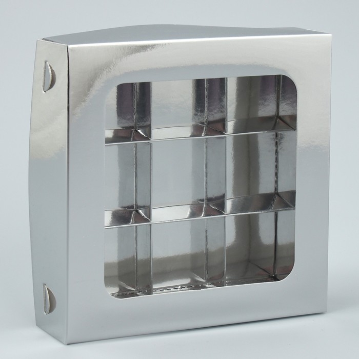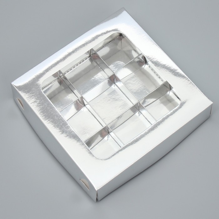 Коробка для конфет, кондитерская упаковка, 9 ячеек, «Серебристая», 14.7 х 14.7 х 3.5 см