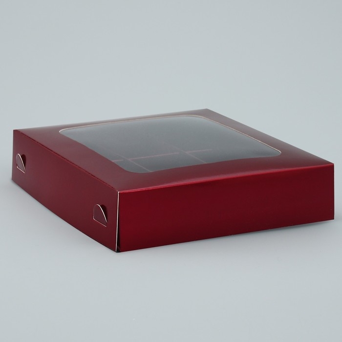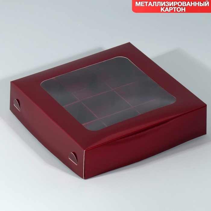 Коробка для конфет, кондитерская упаковка, 9 ячеек, «Бордовая», 14.7 х 14.7 х 3.5 см