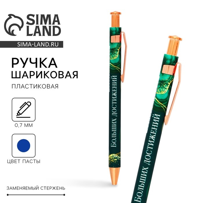 Ручка шариковая синяя паста 0.7 мм «Больших достижений» пластик