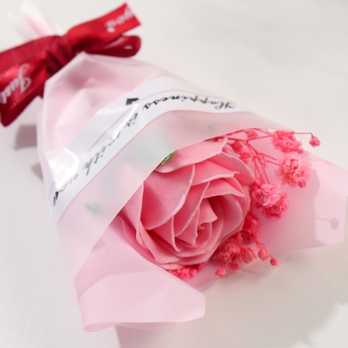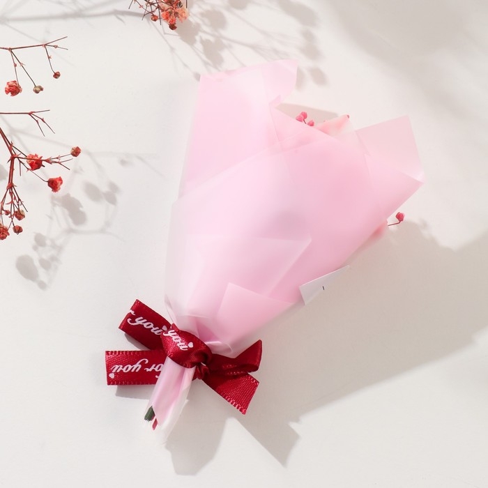 Мини-букет из мыльных лепестков "Розовая роза с сухоцветами" 10х7 см