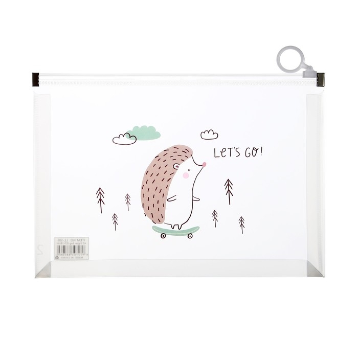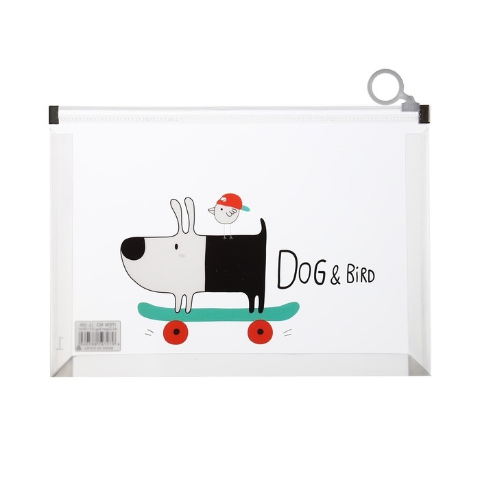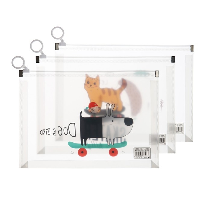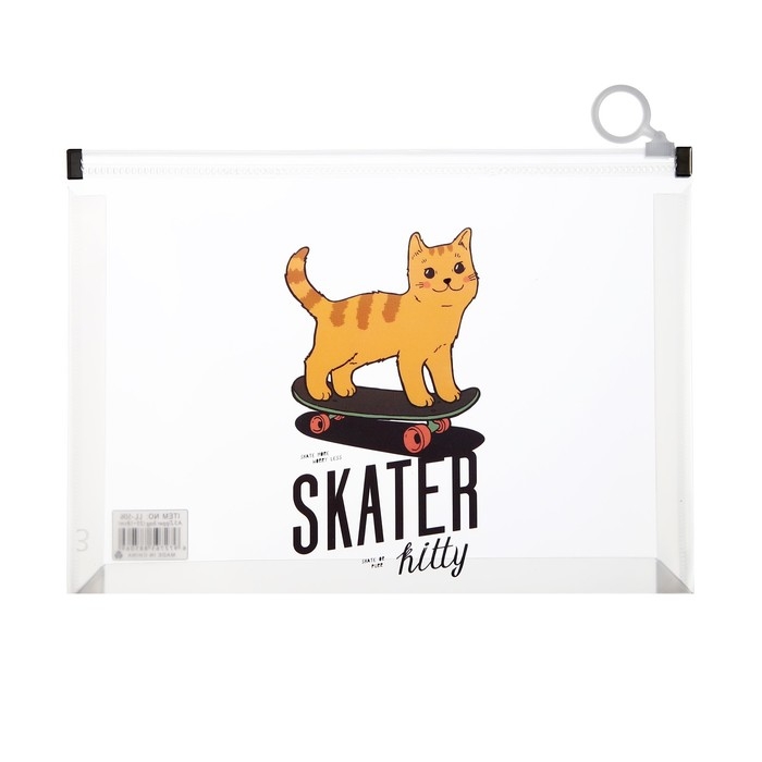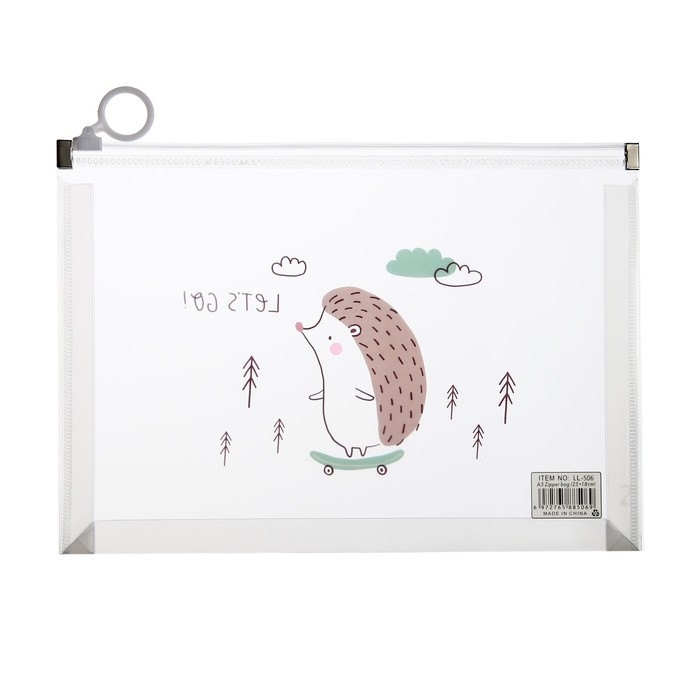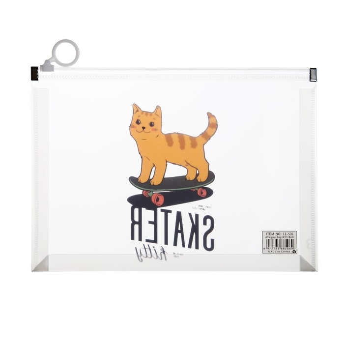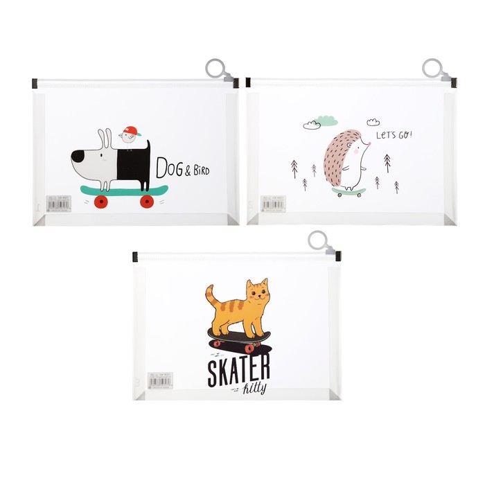Папка-конверт на молнии формат А5, 180мкр, с рисунком "Звери на скейтборде и сноуборде", МИКС