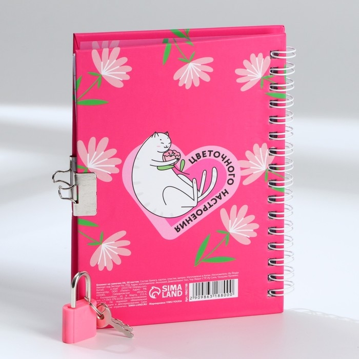Блокнот на замочке А6, 50 л. «С 8 Марта»