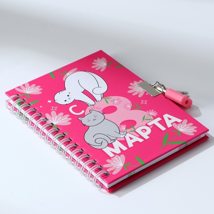 Блокнот на замочке А6, 50 л «С 8 марта!»