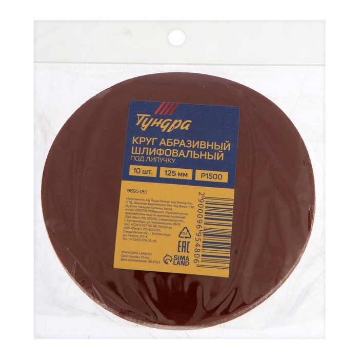 Круг абразивный шлифовальный под "липучку" ТУНДРА, 125 мм, Р1500, 10 шт.