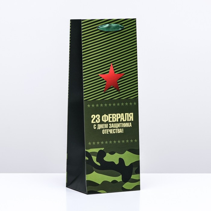 Пакет ламинированный под бутылку "23 Февраля",13 х 36 х 10 см
