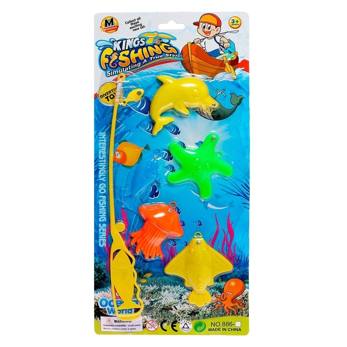 Рыбалка магнитная «Яркие рыбки», 1 удочка, 5 рыбок, цвет МИКС