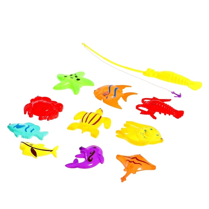 Рыбалка магнитная «Морские рыбки», 1 удочка, 10 рыбок, цвета МИКС