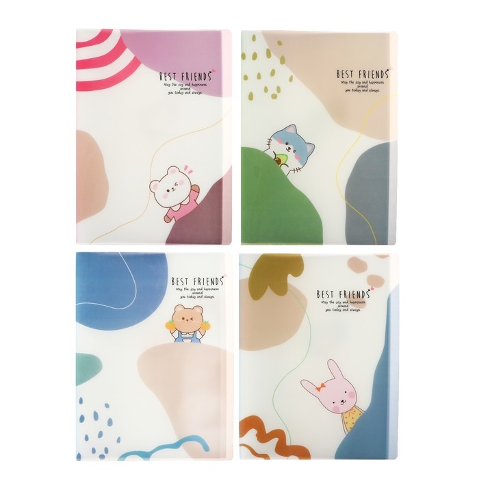 Папка формат А4, с 40 прозрачными файлами "Зверята", МИКС