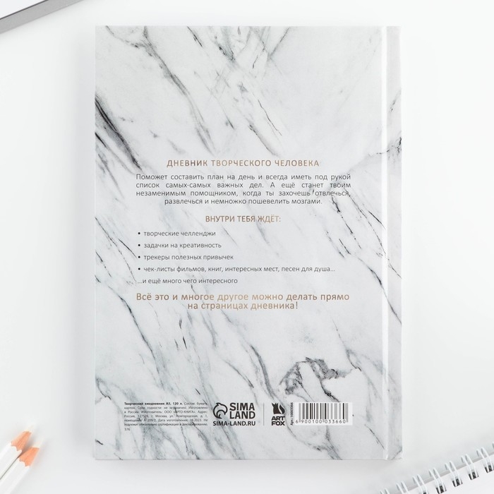 Ежедневник творческого человека с заданиями А5, 120 л. В твердой обложке «365 идей и планов»