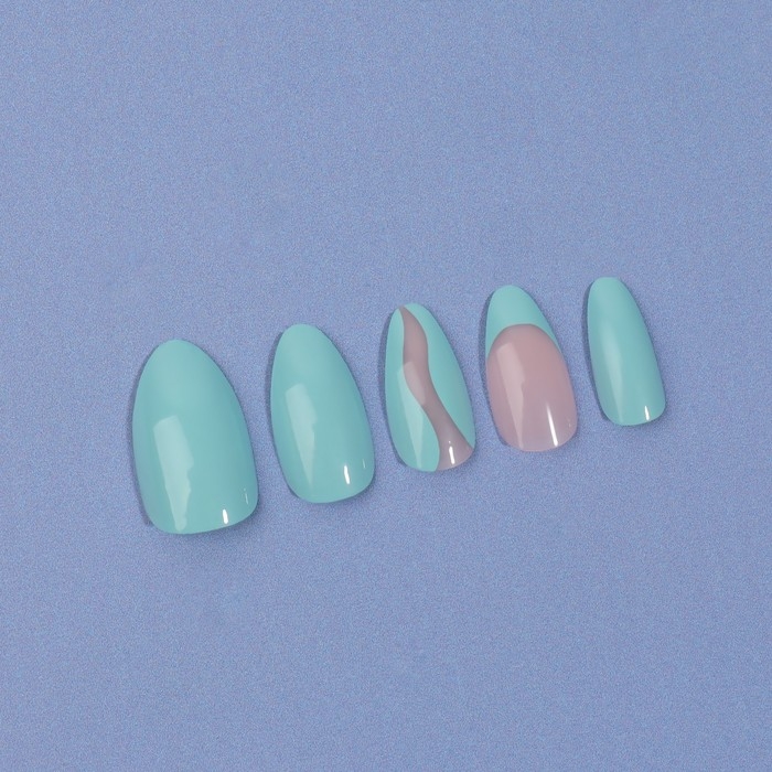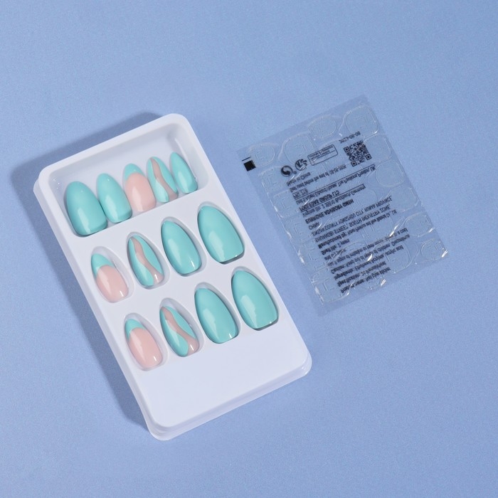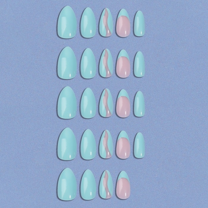 Накладные ногти «Freshness», 24 шт, с клеевыми пластинами, форма миндаль, цвет голубой/розовый