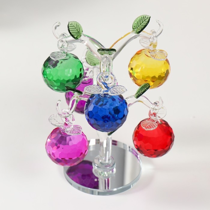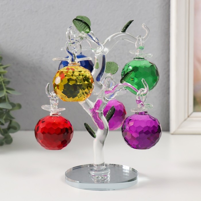 Сувенир стекло "Хрустальная яблоня с цветным яблоками" 14х14х17 см