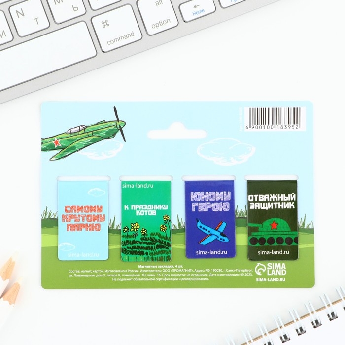 Магнитные закладки для книг, 4 шт. «Юный герой»